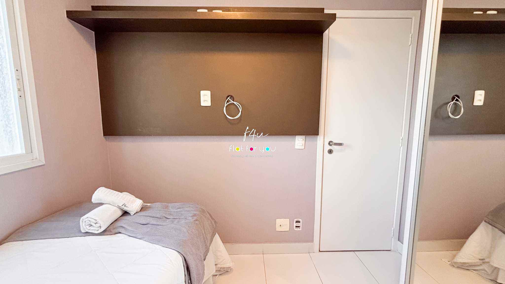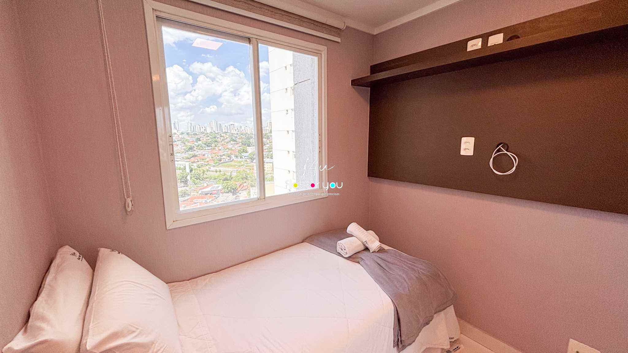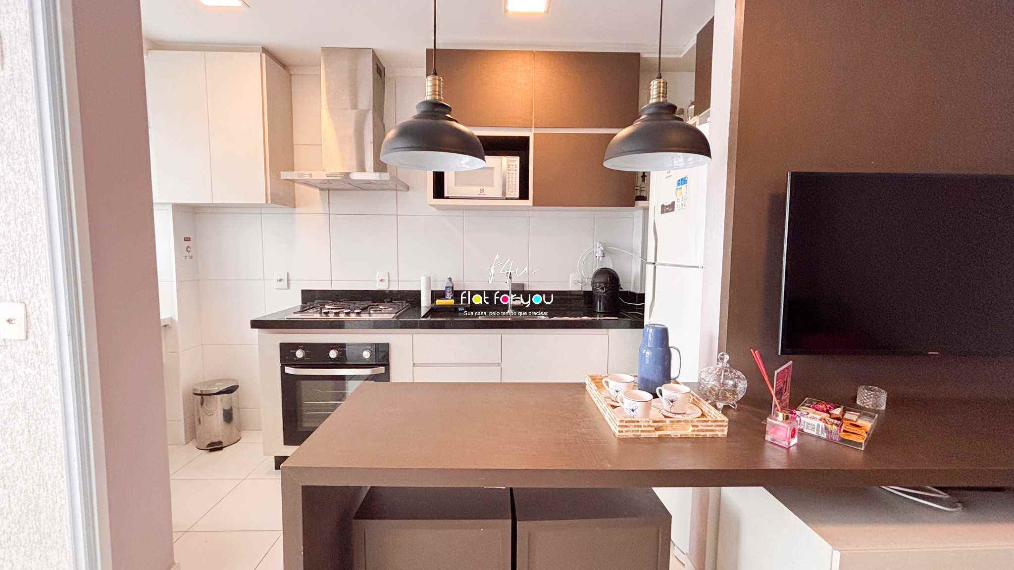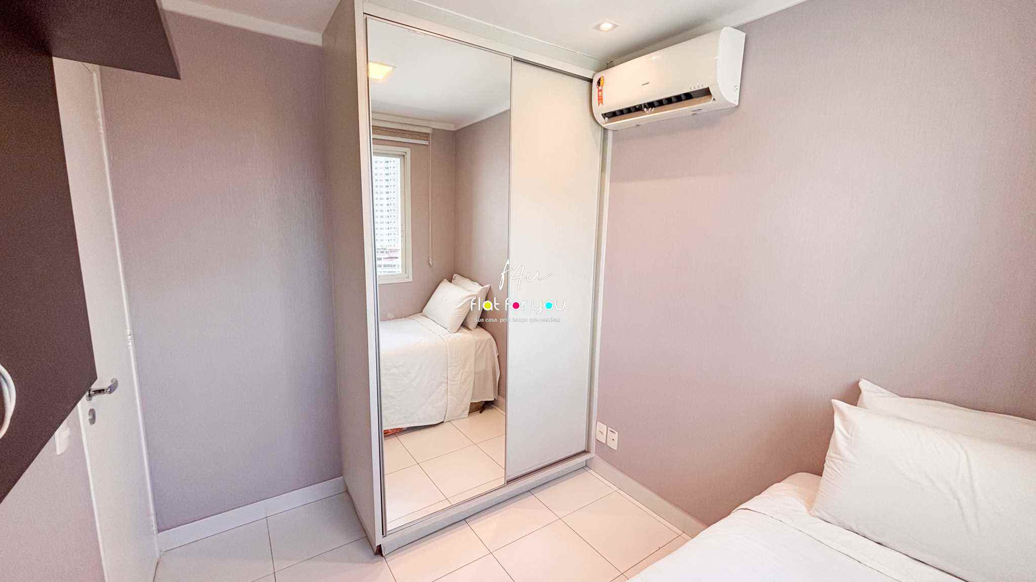 Apartamento de 2 quartos , dispõe de uma sala espaçosa, cozinha e área de serviço. Está 100% mobiliado e decorado com bom gosto e esmero. Possui cortinas em todas as janelas, armários planejados em todos os ambientes, ar condicionado nos quartos e na sala.