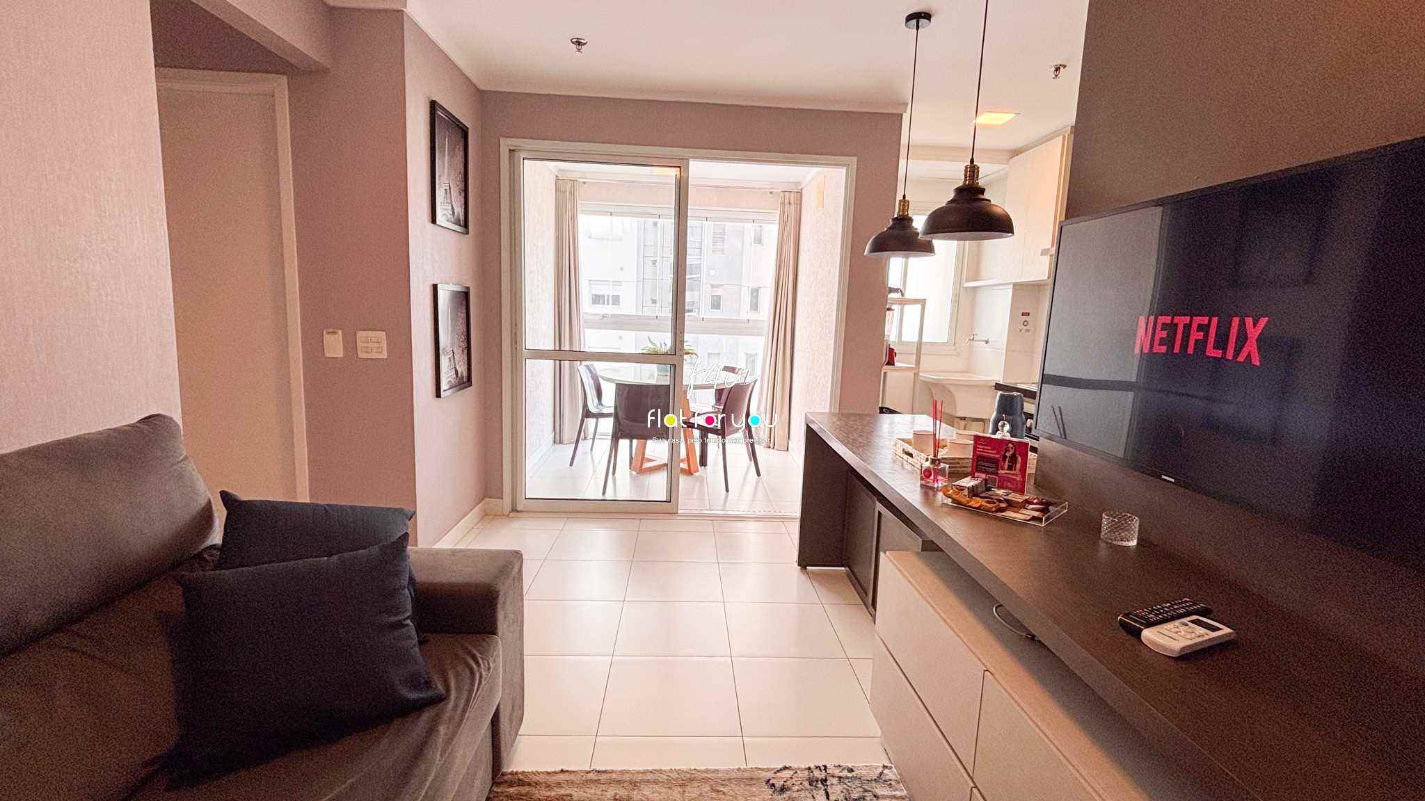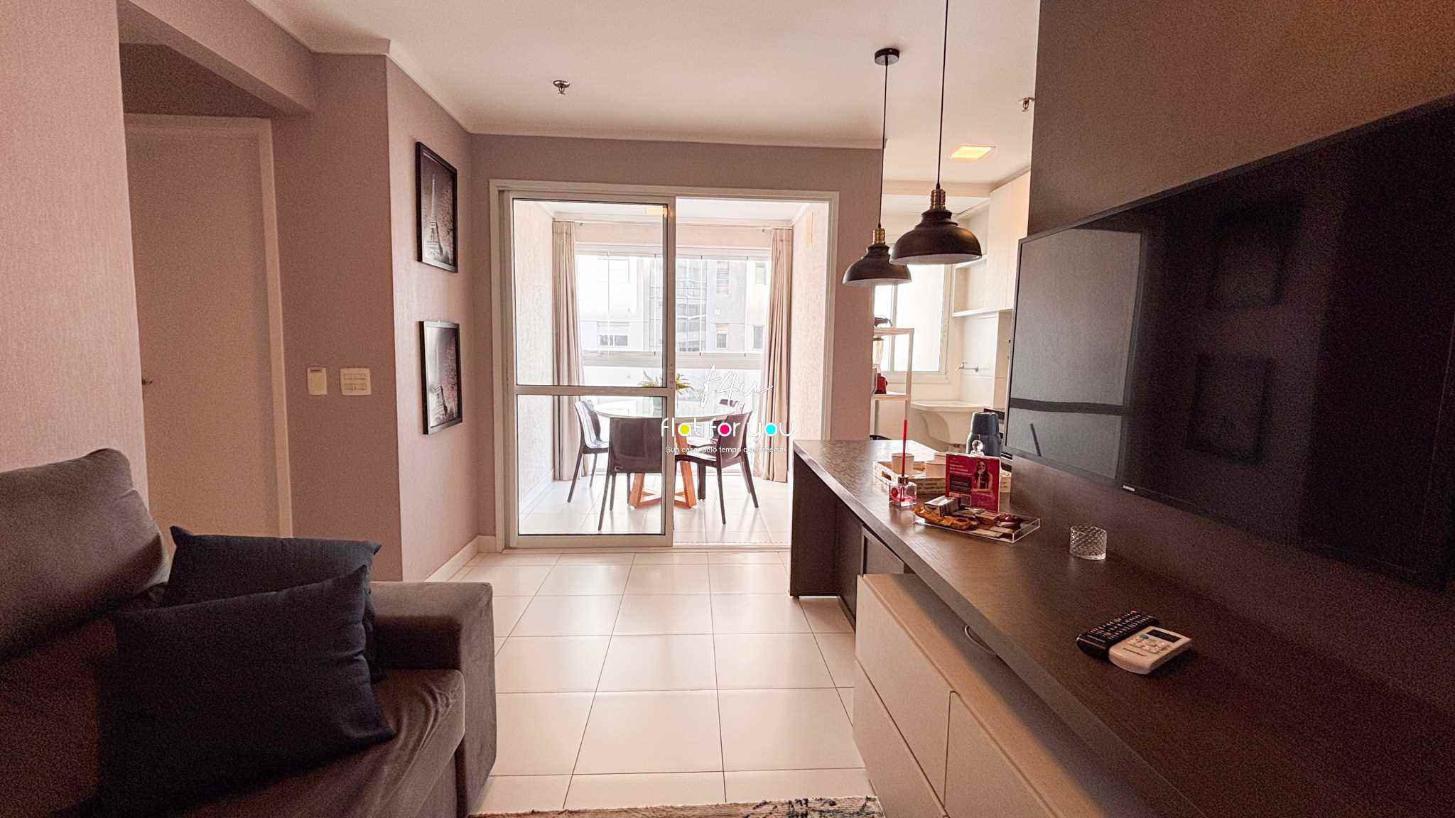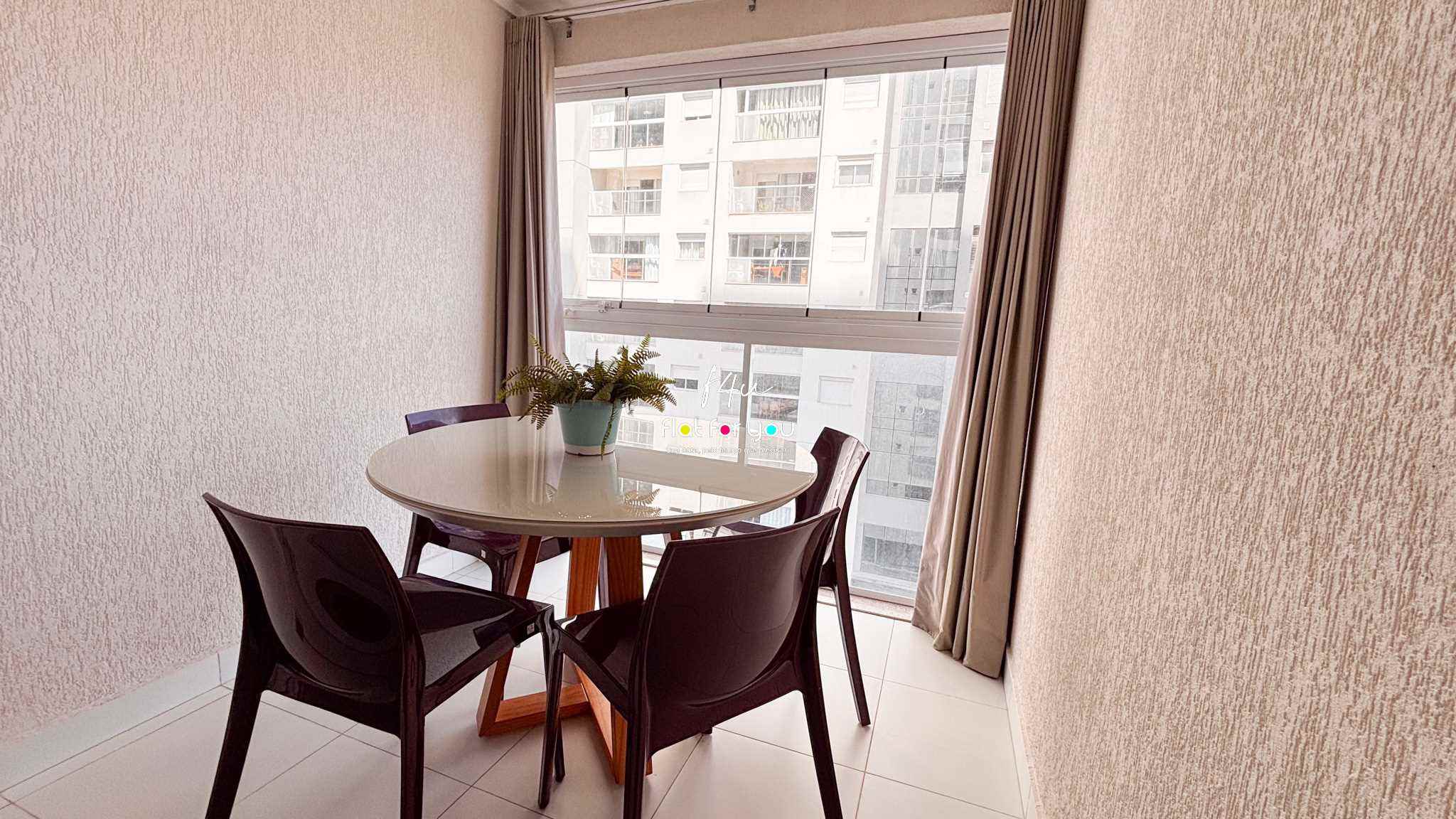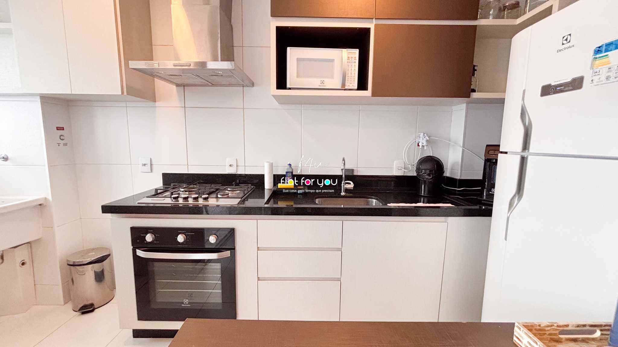 Apartamento de 2 quartos , dispõe de uma sala espaçosa, cozinha e área de serviço. Está 100% mobiliado e decorado com bom gosto e esmero. Possui cortinas em todas as janelas, armários planejados em todos os ambientes, ar condicionado nos quartos e na sala.