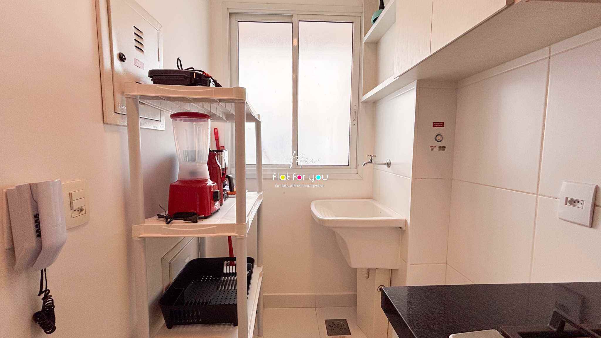 Cozinha completada, possui geladeira, fogão cooktop, liquidificador , Airfryer, utensílios de uso diário e ainda área de serviço com tanque.